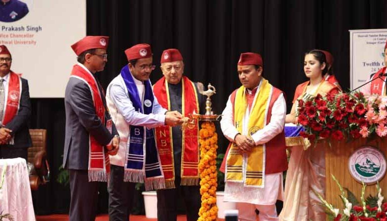 श्रीनगर।  हेमवती नंदन बहुगुणा गढ़वाल विश्वविद्यालय का 12वां दीक्षांत समारोह मंगलवार को धूमधाम से सम्पन्न हुआ। विश्वविद्यालय के कुलाधिपति डॉ योगेन्द्र नारायण की अध्यक्षता में उच्च शिक्षा मंत्री धन सिंह रावत ने दीप प्रज्ज्वल के साथ दीक्षांत समारोह का उद्घाटन किया।