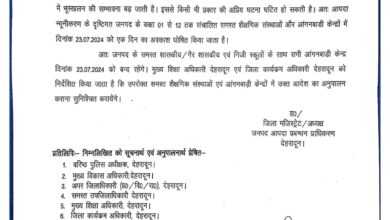 देहरादून जिले में 23 जुलाई को बंद रहेंगे 12वीं तक के विद्यालय व आंगनबाड़ी केंद्र