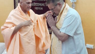 मंत्री जोशी ने आचार्य स्वामी अवधेशानन्द गिरी जी महाराज से भेंट कर उनका आशीर्वाद लिया