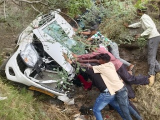 खाई में गिरी कार,दो की मौत,एक गंभीर