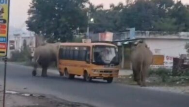 दो हाथियों ने स्कूल बस को घेरा, मचा हड़कंप