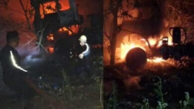 ट्रक खाई में गिरने से लगी जंगल में आग, मची अफरा-तफरी