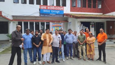 युवा दून डिस्ट्रीब्यूटर एसोसिएशन के व्यापारियों ने क्लेमनटाउन थाने में जमकर हंगामा काटा