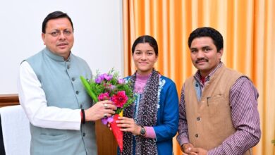 मुख्यमंत्री आदर्श ग्राम सारकोट की ग्राम प्रधान प्रियंका नेगी ने सीएम से की भेंट