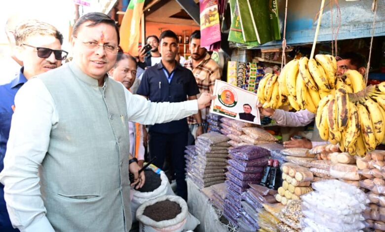 चंपावत/देहरादून,। मुख्यमंत्री पुष्कर सिंह धामी ने बुधवार को जनपद मुख्यालय के मुख्य बाज़ार में जीएसटी जागरूकता रैली का नेतृत्व किया। इस दौरान उन्होंने व्यापारियों और आम जनता से सीधा संवाद स्थापित किया, साथ ही केंद्र सरकार द्वारा हाल ही में कम किए गए जीएसटी स्लैब के संबंध में आवश्यक जानकारी साझा की और उनका फीडबैक लिया। मुख्यमंत्री श्री धामी ने बाज़ार में विभिन्न प्रतिष्ठानों, जिनमें प्रकाश तिवारी, तिवारी स्वीट्स, मयूख चौधरी की चौधरी वस्त्र भंडार तथा बस स्टेशन स्थित प्रकाश तिवारी के जनरल स्टोर पर पहुँचकर व्यापारियों से मुलाकात की और नए जीएसटी स्लैब पर उनकी राय जानी। उन्होंने व्यापारियों से विशेष रूप से आग्रह किया कि वे घटी हुई जीएसटी दरों के बारे में आम जन को भी पूरी जानकारी दें, ताकि उपभोक्ता को इसका सीधा और पूर्ण लाभ मिल सके।