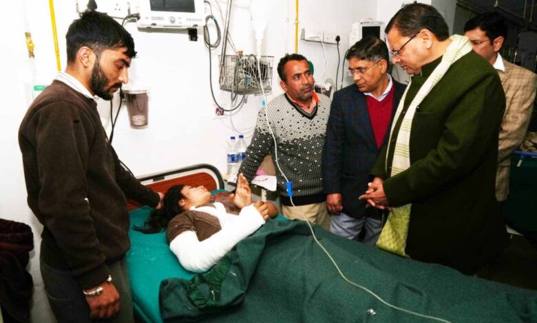 दुर्घटना में घायल यात्रियों का हाल पूछने दून अस्पताल पहुंचे धामी