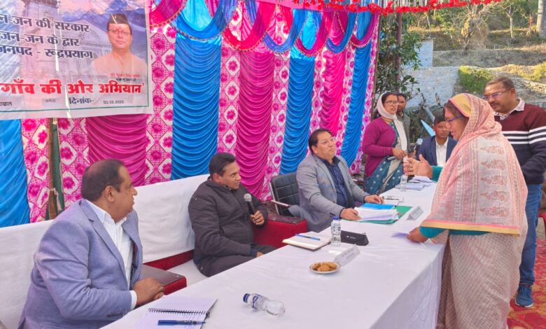 देहरादून। मुख्यमंत्री पुष्कर सिंह धामी के दिशा-निर्देशों के क्रम में आम जनमानस तक केंद्र एवं राज्य सरकार की जनकल्याणकारी योजनाओं का लाभ सीधे पहुंचाने और जनसमस्याओं के त्वरित समाधान के उद्देश्य से प्रदेशभर में “जन-जन की सरकार, जन-जन के द्वार” अभियान संचालित किया जा रहा है। इसी क्रम में प्रभारी सचिव रुद्रप्रयाग डॉ. आर. राजेश कुमार ने जनपद का दौरा कर प्रशासनिक व्यवस्थाओं का स्थलीय निरीक्षण किया और ग्रामीणों से सीधा संवाद स्थापित किया। जिलाधिकारी रुद्रप्रयाग प्रतीक जैन के कुशल नेतृत्व में जनपद की 27 न्याय पंचायतों में चरणबद्ध रूप से बहुउद्देशीय शिविरों का आयोजन किया जा रहा है। इसी कड़ी में 05 फरवरी 2026 को न्याय पंचायत सतेराखाल के अंतर्गत ग्राम कमेड़ा में “प्रशासन गांव की ओर” बहुउद्देशीय शिविर का आयोजन किया गया। शिविर की अध्यक्षता प्रभारी सचिव रुद्रप्रयाग डॉ. आर. राजेश कुमार ने की।