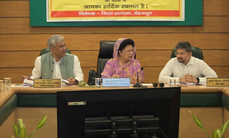 देहरादून। सांसद माला राज्य लक्ष्मी शाह ने राजपुर रोड स्थित वन मुख्यालय के मंथन सभागार में आयोजित जिला विकास समन्वय एवं निगरानी समिति (दिशा) की बैठक में केंद्र पोषित योजनाओं की विस्तृत समीक्षा की। बैठक में स्वास्थ्य, शिक्षा, पेयजल, सिंचाई, पंचायती राज, महिला एवं बाल विकास, पशुपालन, डेयरी, खाद्य, उरेडा, नगर निगम और दूरसंचार विभागों की योजनाओं की प्रगति पर चर्चा की गई।