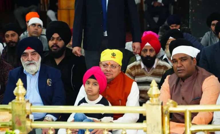 देहरादून। मुख्यमंत्री पुष्कर सिंह धामी ने मंगलवार को श्री गुरु तेगबादुर साहिब जी के 350वें बलिदान दिवस पर रेसकोर्स स्थित गुरुद्वारा में आयोजित कार्यक्रम में प्रतिभाग किया। मुख्यमंत्री ने श्रीगुरुद्वारा साहिब में मत्था टेकने के साथ ही शबद कीर्तन भी सुना।
