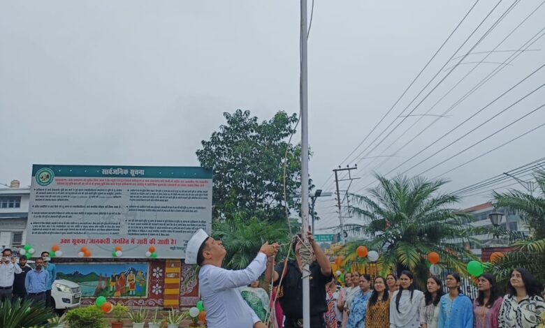 देहरादूनः स्वतंत्रता दिवस के अवसर पर आज सुबह 9 बजे मसूरी-देहरादून विकास प्राधिकरण (एमडीडीए) कार्यालय परिसर में गरिमामय ध्वजारोहण कार्यक्रम आयोजित किया गया। कार्यक्रम की अध्यक्षता एमडीडीए उपाध्यक्ष बंशीधर तिवारी ने की। तिरंगा फहराते ही परिसर देशभक्ति के नारों और “वन्दे मातरम्” की गूंज से भर उठा।