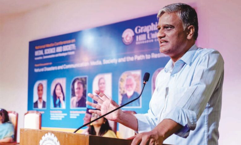 ग्राफिक एरा हिल यूनिवर्सिटी में मीडिया, विज्ञान और समाज के विषय पर राष्ट्रीय सम्मेलन का आयोजन किया गया। सम्मेलन को संबोधित करते हुए ग्राफिक एरा हिल यूनिवर्सिटी के कुलपति डा. अमित आर. भट्ट ने कहा यह सम्मेलन केवल अकादमिक उपलब्धियों का जश्न नहीं है, बल्कि मीडिया को सतत् विकास और समाज के निर्माण के लिए एक प्रभावशाली माध्यम के रूप में देखने का अवसर है। उन्होंने मीडिया इकोसिस्टम की अनुशासनात्मक प्रकृति पर जोर दिया और कहा कि यह सिर्फ एक सम्मेलन नहीं, बल्कि सतत् भविष्य के लिए एक आंदोलन होना चाहिए।