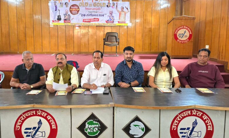 देहरादून। दून के संगीत प्रेमी 12 अप्रैल को दोपहर 3 बजे से सर्वे चौक स्थित आईआरडीटी ऑडिटोरियम में आयोजित ‘ओल्ड इज़ गोल्ड नाइट’ बाय स्वरांजली का आनंद ले सकेंगे। इस कार्यक्रम की घोषणा आज देहरादून प्रेस क्लब में आयोजित एक प्रेस वार्ता के दौरान की गई।