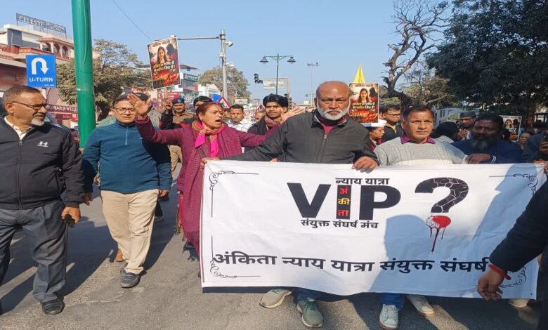 उधर, वाम मोर्चा और जन संगठनों ने अलग से अंकिता को न्याय दिलाने और वीआईपी को जेल भेजने की मांग को लेकर गांधी पार्क से घंटाघर तक पैदल मार्च निकालते हुए विरोध प्रदर्शन किया। सीपीआई नेता समर भंडारी का कहना है कि प्रदेश सरकार ने अंकिता भंडारी हत्याकांड की सीबीआई से जांच कराए जाने की संस्तुति कर दी है। लेकिन हमारी पहले दिन से डिमांड थी, यह जो सीबीआई जांच हो, वो सुप्रीम कोर्ट के सिटिंग जज की निगरानी में हो। अन्यथा कई तरीके के दबावों से प्रदेश सरकार लगातार अपराधियों को बचाने का प्रयास कर रही है। हमारा कहना है कि अगर इस मामले की न्याय संगत जांच करनी है, तो जांच में सुप्रीम कोर्ट के सिटिंग जज का रहना अनिवार्य है।
