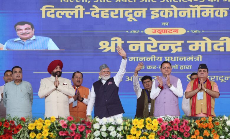 देहरादून। प्रधानमंत्री नरेंद्र मोदी ने मंगलवार को जसवंत सिंह आर्मी ग्राउंड, गढ़ी कैंट में आयोजित समारोह में 210 किमी लंबे, दिल्ली-देहरादून इकोनॉमिक कॉरिडोर का रिमोट बटन दबाकर लोकार्पण किया। इससे पहले प्रधानमंत्री ने गढ़ी कैंट तक 12 किलोमीटर लंबे रोड शो में प्रतिभाग करने के साथ ही डाटकाली मंदिर में दर्शन करने के उपरांत पूजा भी की। प्रधानमंत्री नरेंद्र मोदी ने गढ़ी कैंट में आयोजित, समारोह में अपने संबोधन की शुरुआत देशवासियों को बैसाखी और बिहू पर्व की शुभकामनाएं देते हुए कहा कि आने वाले कुछ दिनों में उत्तराखंड में स्थित पवित्र चार धामों की भी यात्रा शुरु होने वाली है, जिसका देशभर के आस्थावान लोग प्रतीक्षा करते हैं। दिल्ली-देहरादून इकोनॉमिक कॉरिडोर बनने से चारधाम के यात्रियों को भी सुविधा होगी। उन्होंने कहा कि उत्तराखंड राज्य अपने स्थापना के 26वें प्रवेश कर चुका है, अब राज्य की प्रगति में दिल्ली देहरादून एक्सप्रेस-वे भी शामिल हो गया है। प्रधानमंत्री ने कहा कि कुछ साल पहले उन्होंने बाबा केदार की धरती पर अनायास ही कहा था कि इस शताब्दी का तीसरा दशक उत्तराखंड के नाम होने जा रहा है, उन्हें यह देखकर बेहद खुशी हो रही है कि डबल इंजन वाली सरकार की नीतियों और उत्तराखंड के लोगों के परिश्रम से उत्तराखंड तेजी से इस राह पर बढ़ रहा है।