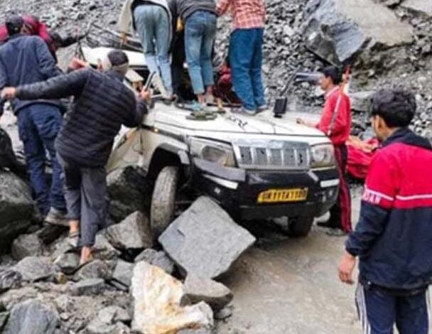 गौरीकुंड हाईवे पर वाहन पर बोल्डर गिरने से दो की मौत, तीन घायल