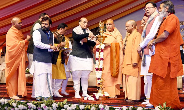 योगी आदित्नाथ ने कहा अयोध्या, काशी, मथुरा, प्रयागराज इन सभी से लेकर केदारपुरी और बदरीनाथ धाम, हरिद्वार तक विकास की नई गाथा विरासत को सरंक्षित करते हुए आगे बढ़ रही है। योगी आदित्यनाथ ने कहा आज भारत वास्तव में एक भौगोलिक टुकड़ा मात्र नहीं है। भारत की ऋषि परंपरा की तपस्या है। भारत किसी सत्ता की उपज नहीं है ।