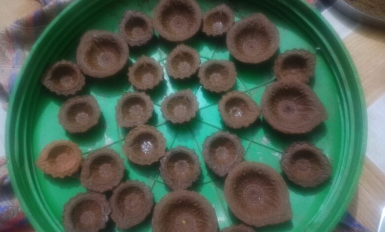 बद्री गाय के गोबर से महिलाओं ने बनाए आकर्षक दीये,