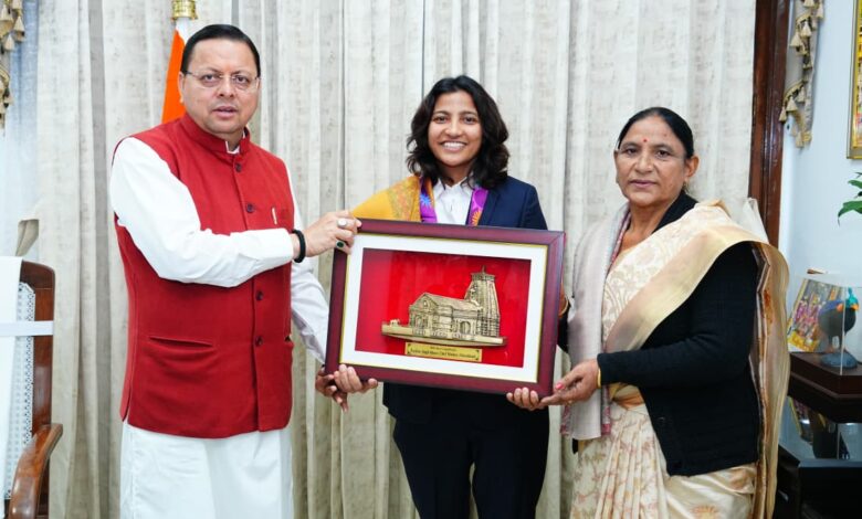 महिला विश्व कप विजेता क्रिकेटर स्नेह राणा ने की मुख्यमंत्री धामी से शिष्टाचार भेंट